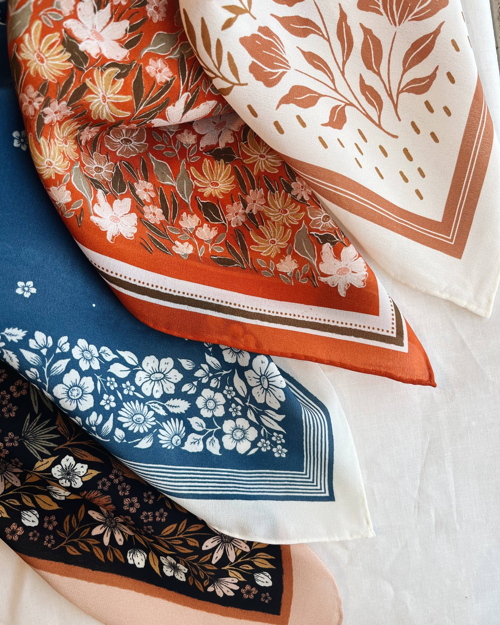 Flora West Design - 100% Silk Bandana Scarf - Desert Floral Western Earth Tones